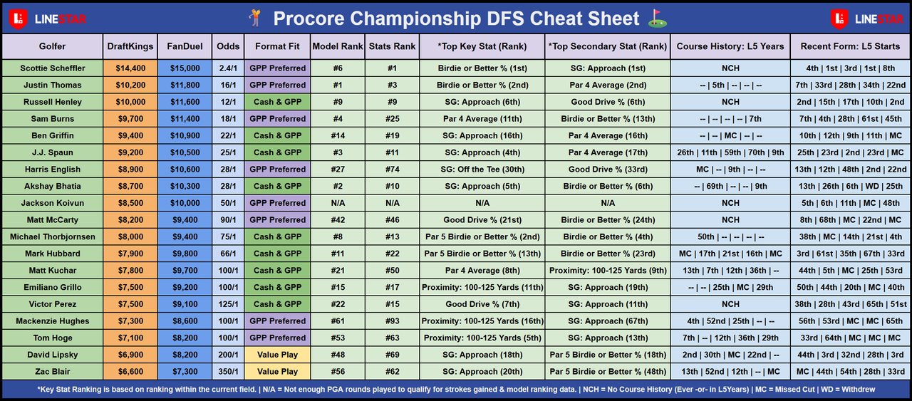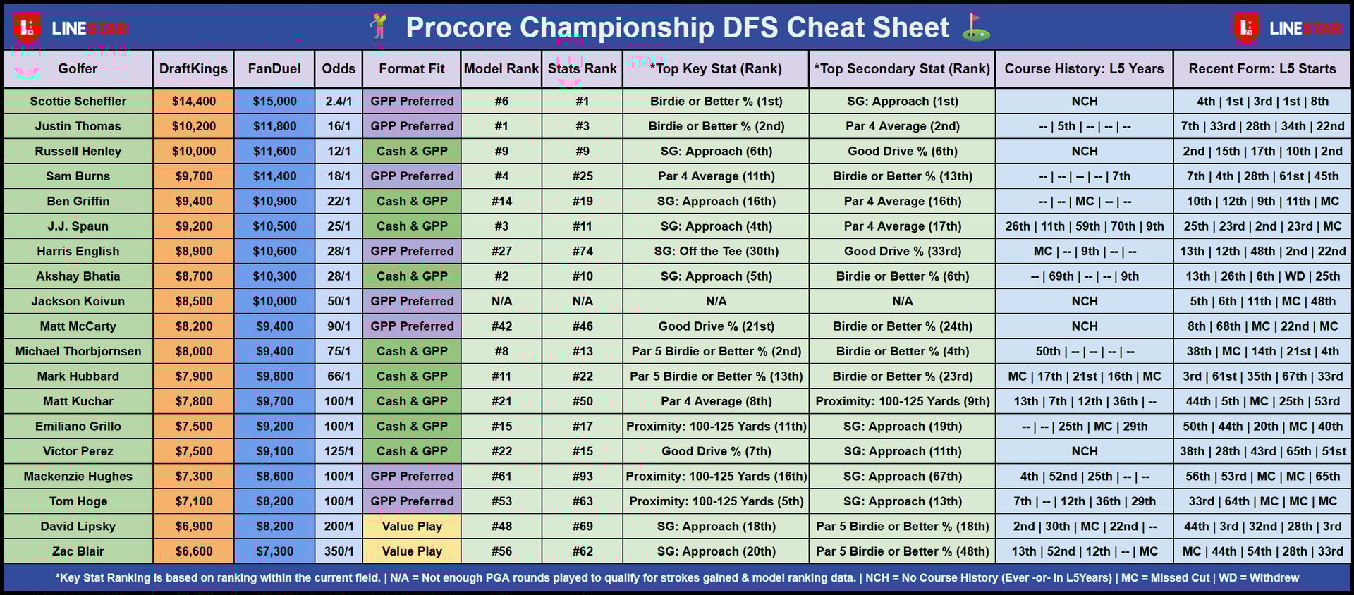 - PGA DFS Guide + DraftKings & FanDuel Cheat Sheet | Procore Championship ⛳
