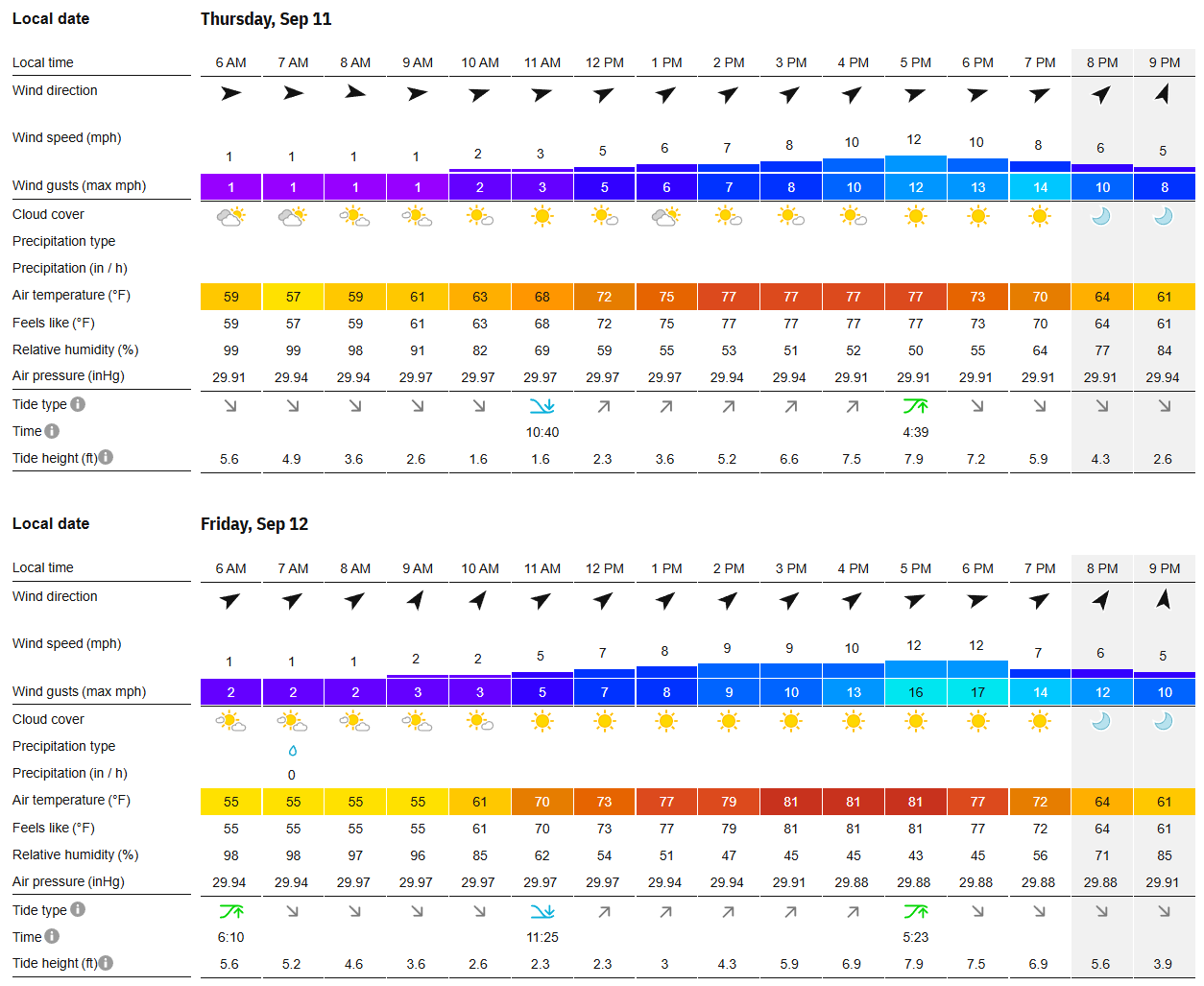 For anyone new to PGA DFS, we take a look at the weather to see if there is an advantage for golfers either teeing up Thursday morning/Friday afternoon (AM/PM wave) or for the guys starting their rounds Thursday afternoon/Friday morning (PM/AM wave). Your top priority in PGA DFS is to get 6-out-of-6 golfers in your lineups through the cut line and into the weekend – from there, anything can happen! If there is an edge to be had for either wave, it is important to take advantage!